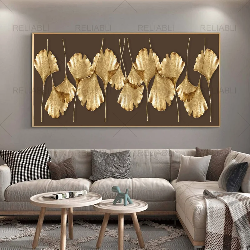 Абстрактные золотые листья, искусственная кожа, напечатанные на холсте, большие размеры, декоративные картины для гостиной, спальни, украшение для дома