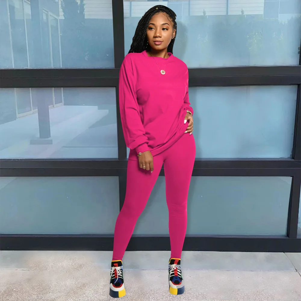 Модный классический однотонный Женский комплект из двух предметов, свитшот, брюки-джоггеры, спортивный костюм, подходящий комплект, повседневная одежда