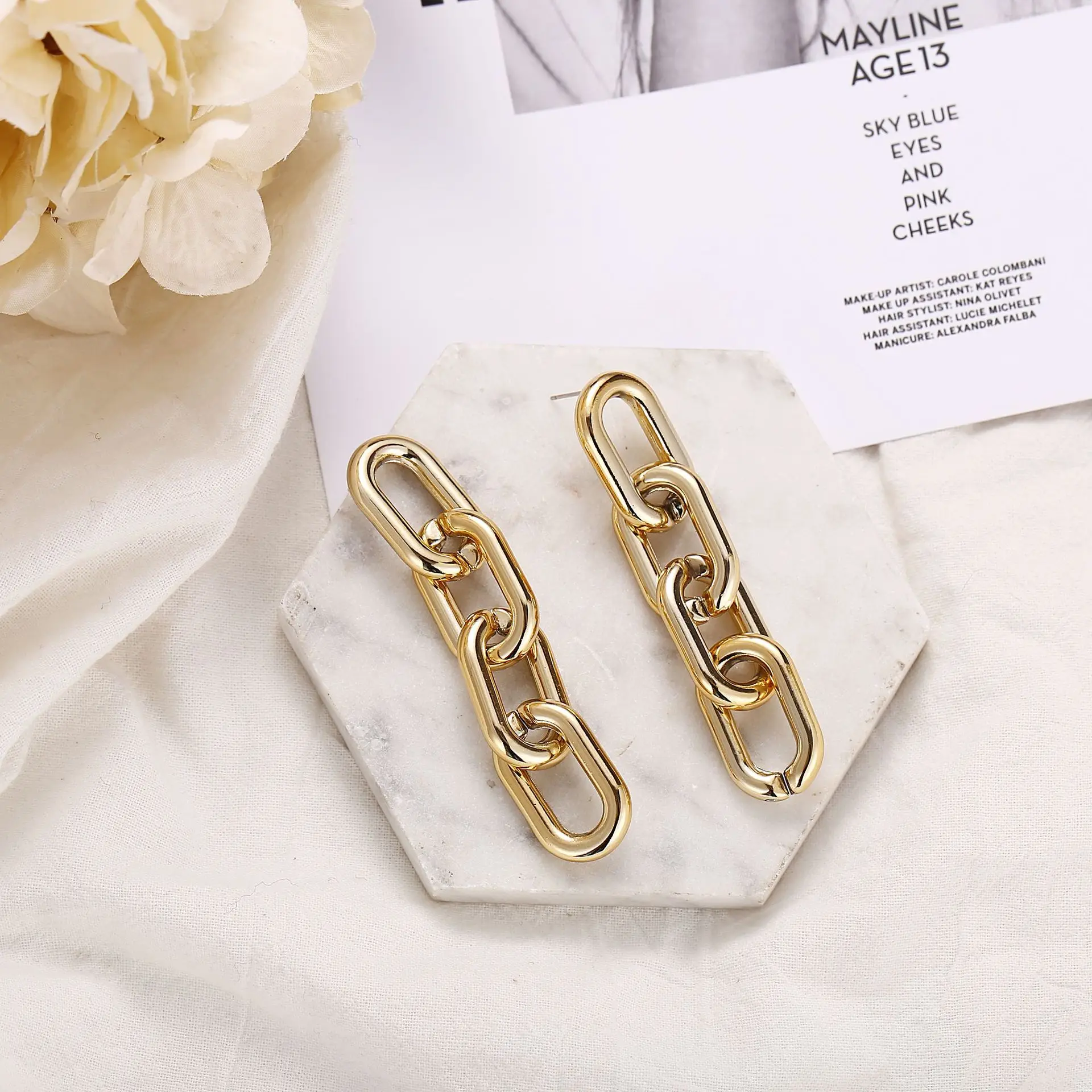 Винтажные латунные серьги с толстой цепочкой для женщин, золотые геометрические стильные Висячие серьги, Модная бижутерия, новинка