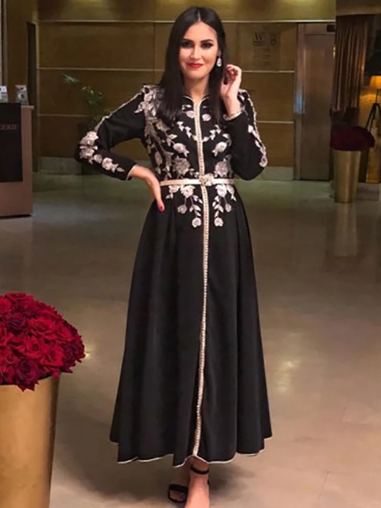 Женское длинное вечернее платье с аппликацией, сарафан из марокканс...