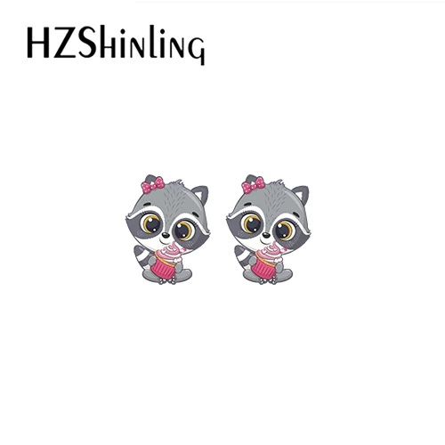 Новое поступление милые животные Енот лиса слон панда любовь милый кекс десерт печать эпоксидные акриловые серьги