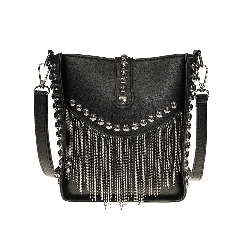 Женская сумка на плечо с кисточками в стиле панк, женская сумка-мессенджер с заклепками, маленькая сумка-ведро, женская сумка через плечо для женщин