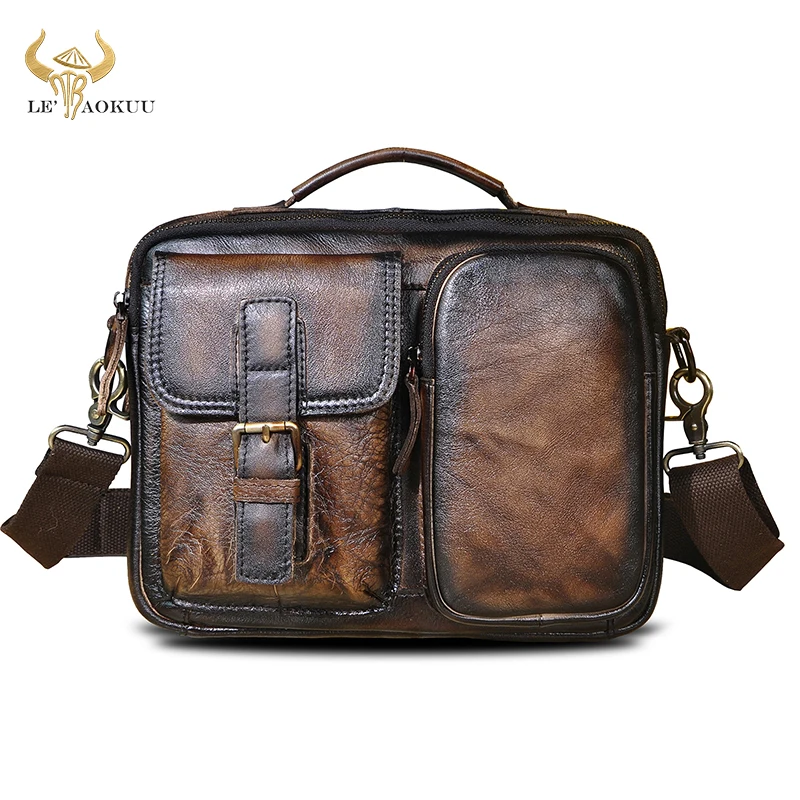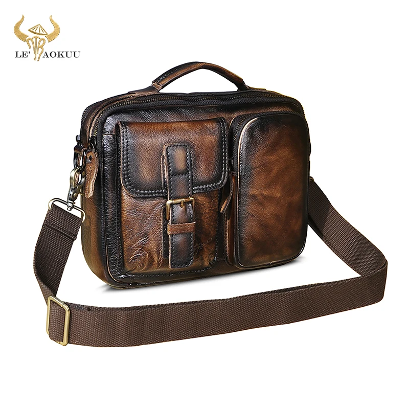 Дизайнерская мужская сумка через плечо из натуральной кожи кофейного цвета, модный дорожный тоут через плечо 9 дюймов, ранец, 036