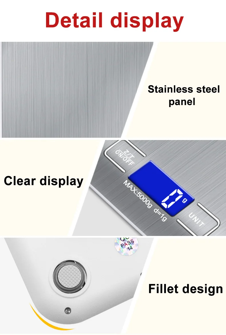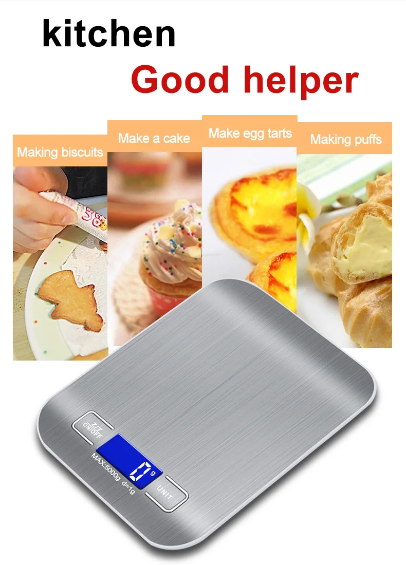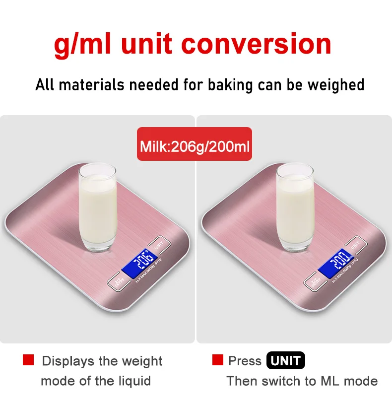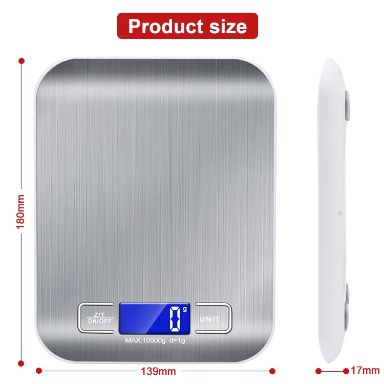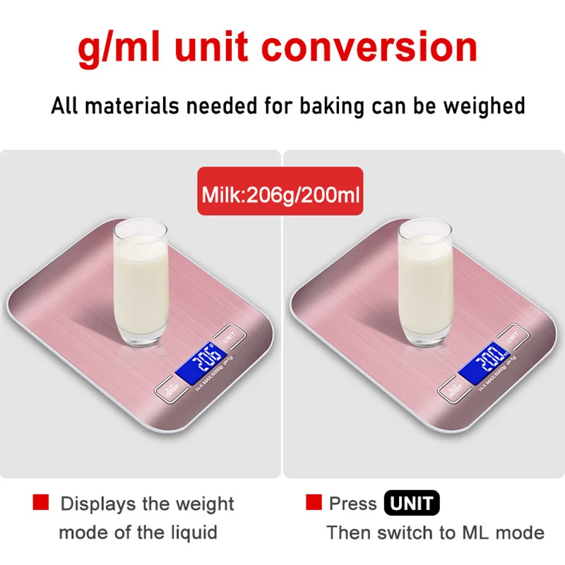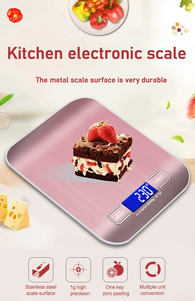 Электронные цифровые весы из нержавеющей стали, кухонный прибор для измерения веса и объема пищи, 5 кг 10 кг