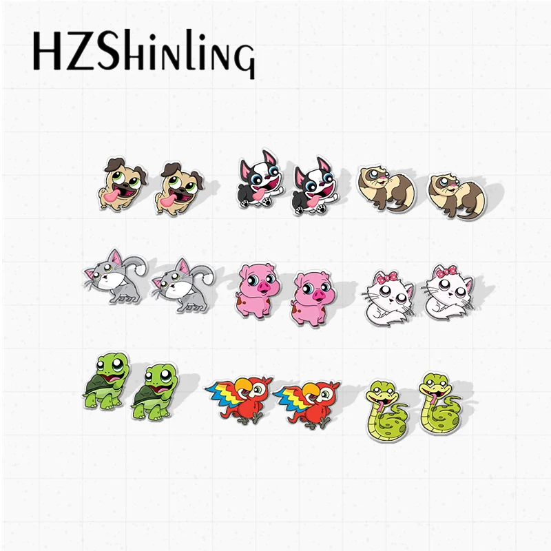 Новые милые животные, мопс, щенок, котенок, свинья, черепаха, попугай, змея, Мультяшные эпоксидные серьги из акриловой смолы