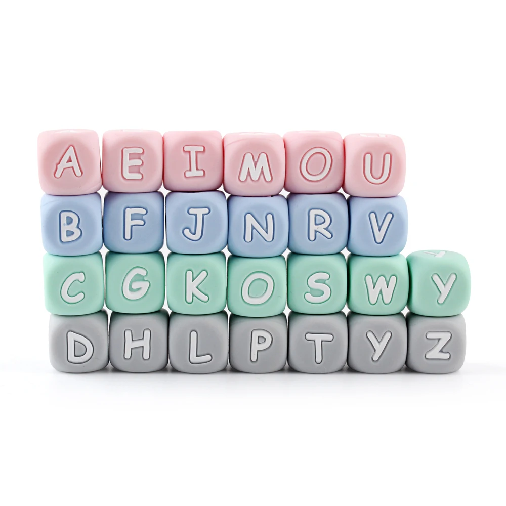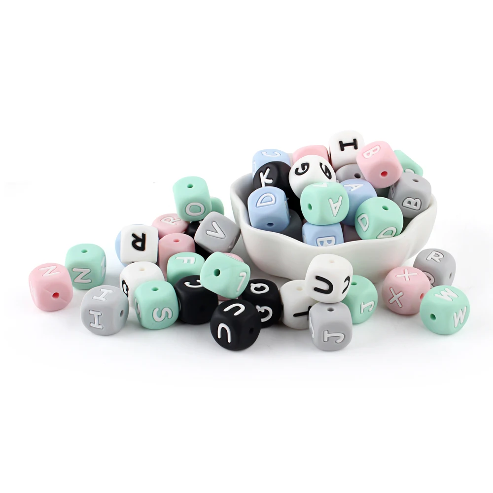 Бусины с буквами алфавита, силиконовые, 12 мм, 200 шт., для прорезывания зубов, для ожерелья, английская цепочка, соска с бусами