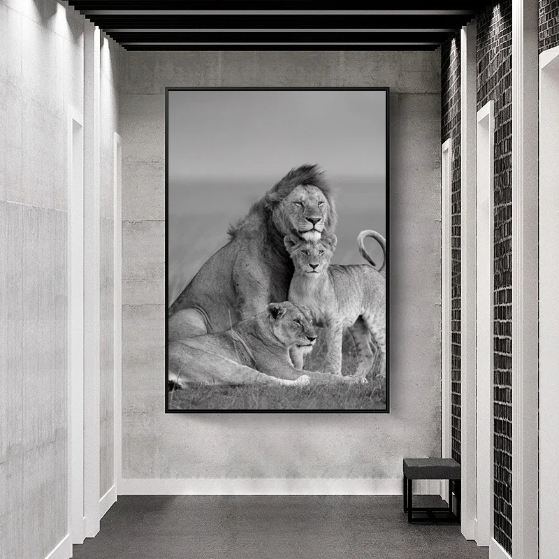 Африканские Дикие Львы семья холст художественные плакаты и принты черно-белые животные холст настенные картины Искусство картинки Cuadro