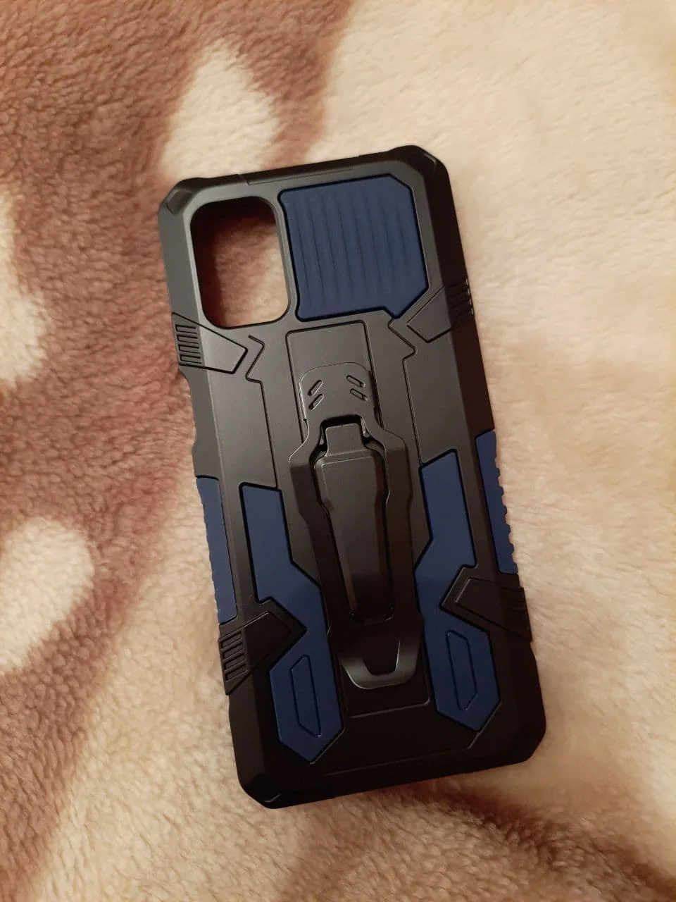 Заднюю ножку типа "подставка" нужно сильно нажимать если хотите вешать телефон на ремень или пояс иначе сломаете. Чехол в компановке не полностью пластиковый,это хорошо. Внутри рёбра жёсткости с резиной как раз где процессор и батарея,значит можно не бояться перегрева и удара. Брал для работы, то что надо!