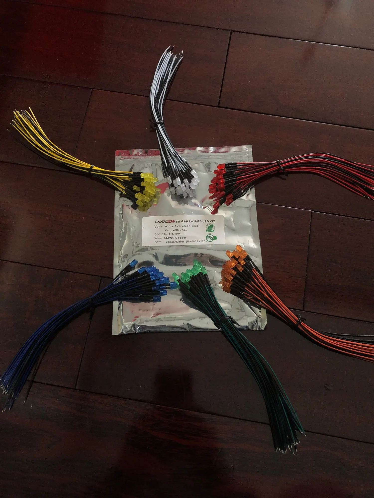 Набор проводных ламп, 120 шт., 5 мм, Предварительно смонтированные светодиоды диодов, 12 В, белый, красный, зеленый, синий, желтый, оранжевый