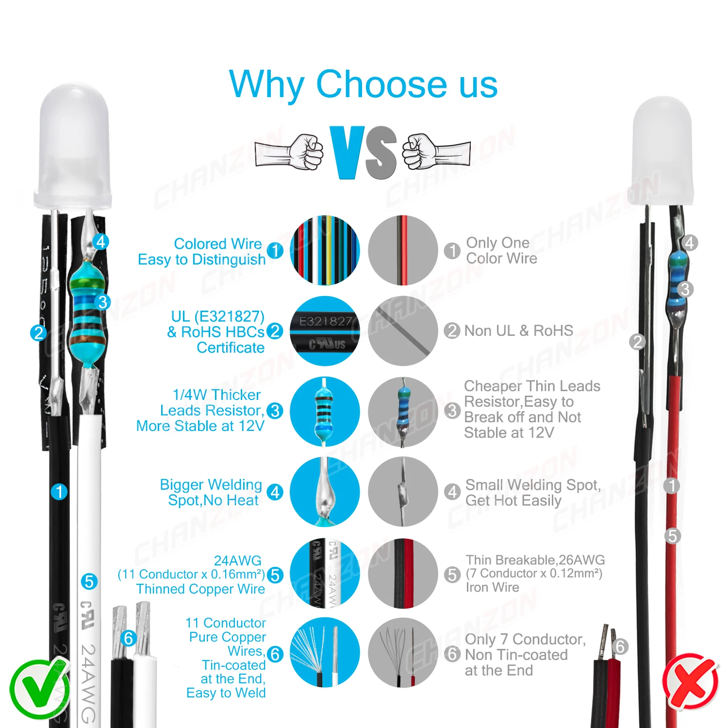 Макс. обратное напряжение9000K 520nm 600nm Amber Small 5Volt 6Volt 9Volt 12Volt Wire Resistor