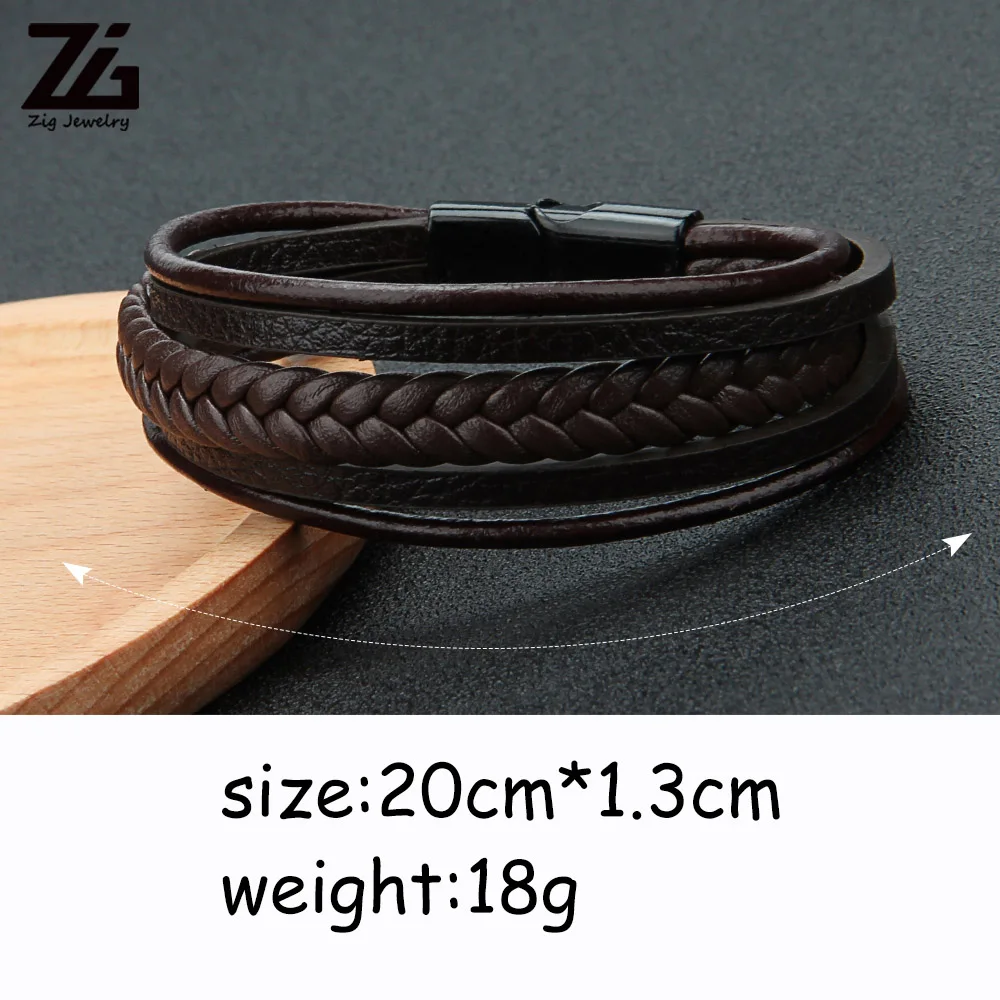 Мужской кожаный браслет с магнитной застежкой, многослойный браслет из воловьей кожи, Модная бижутерия, браслет на руку для мужчин