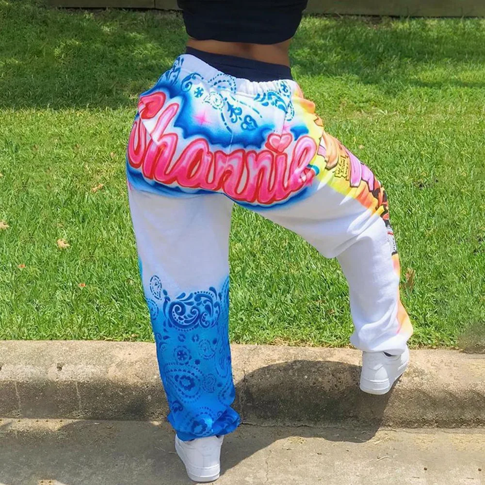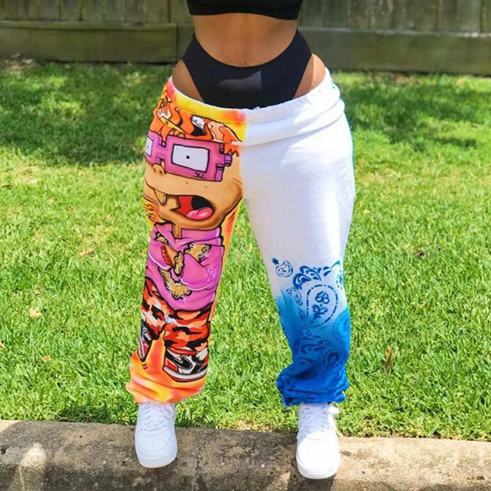 UefezoЖенские брюки-карго SHUJIN, повседневные свободные брюки в стиле Харадзюку С мультяшным принтом, прямые свободные брюки в стиле хип-хоп