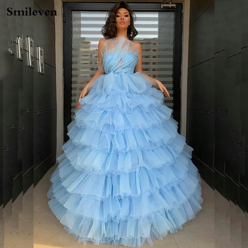 Голубое вечернее платье без бретелек Smileven, длинное платье-Русал...