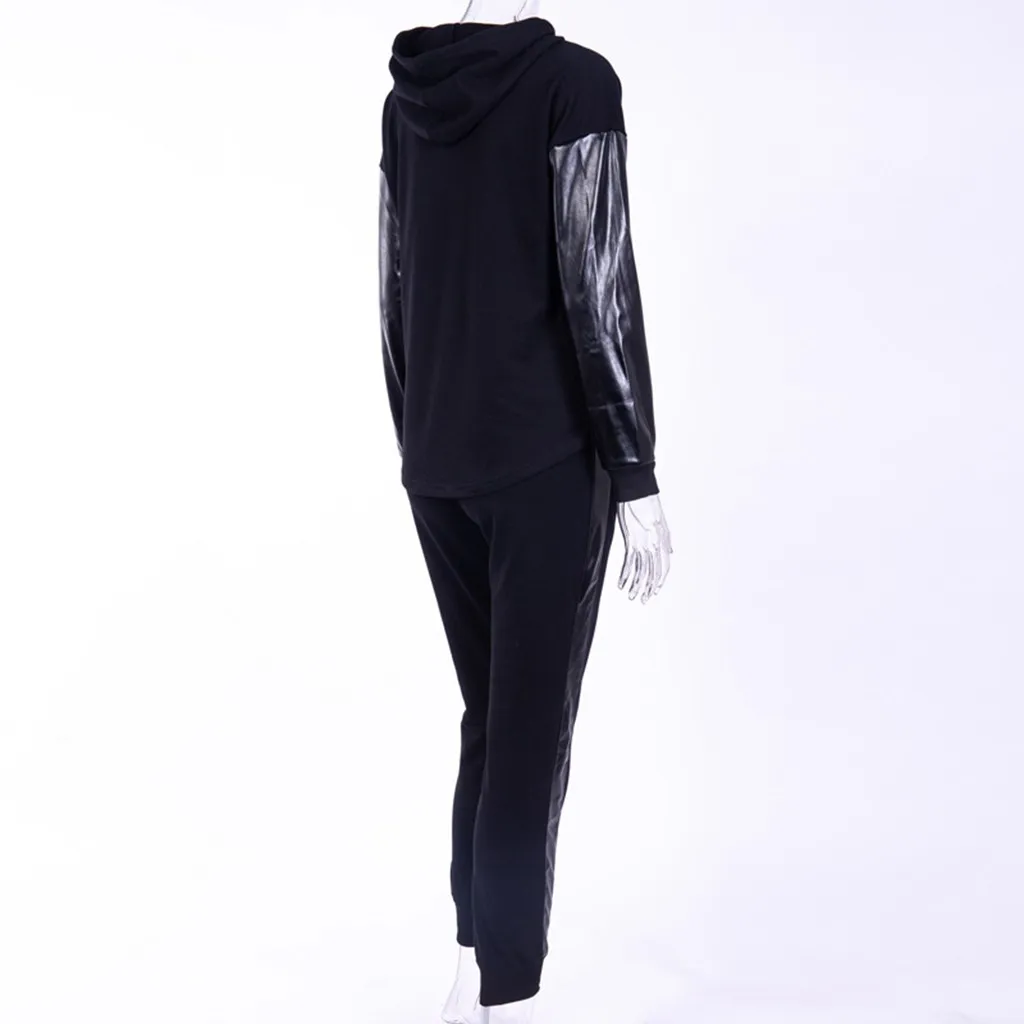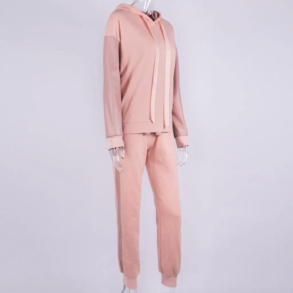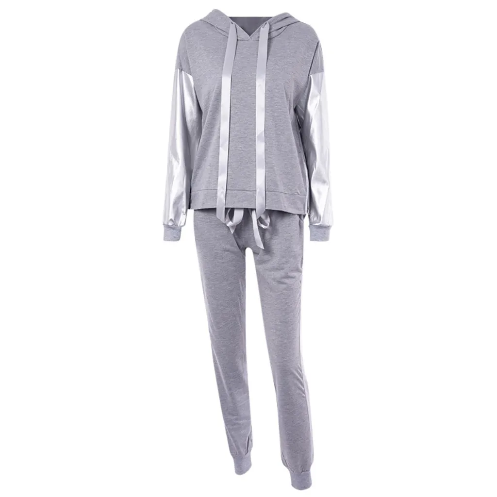 2 шт./компл., Женский Однотонный свитер с капюшоном и штаны, спортивный костюм, спортивный костюм