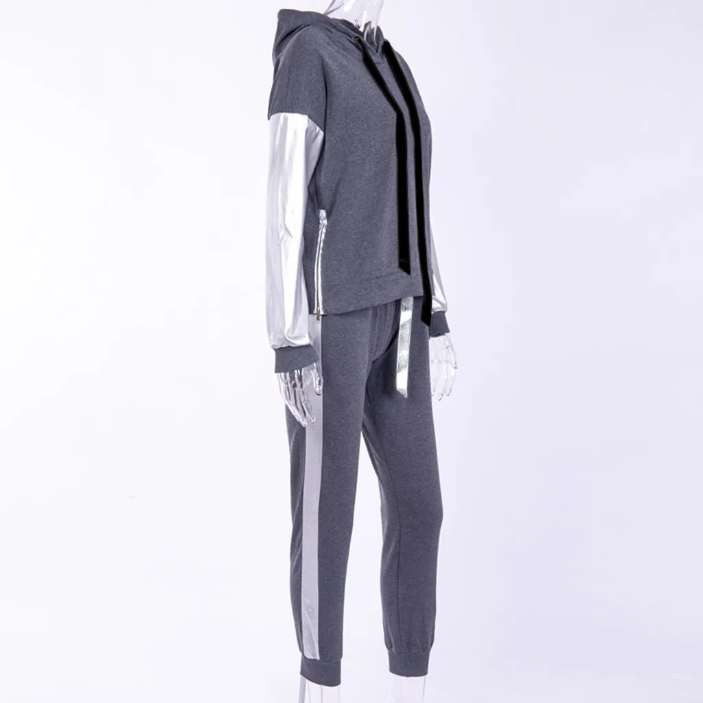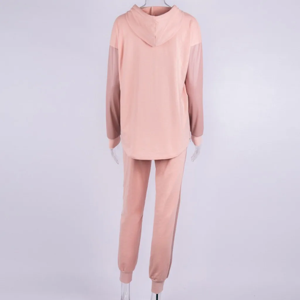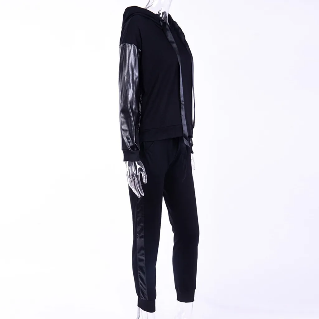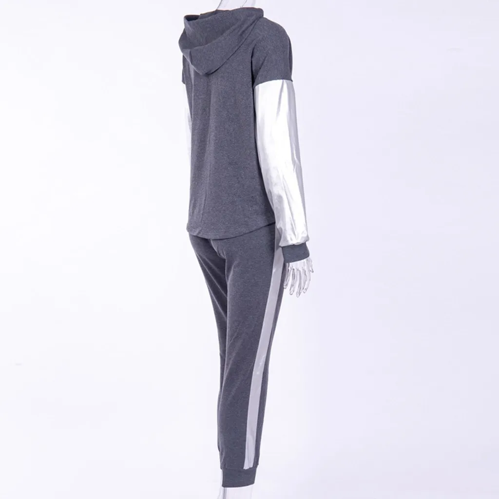 2 шт./компл., Женский Однотонный свитер с капюшоном и штаны, спортивный костюм, спортивный костюм