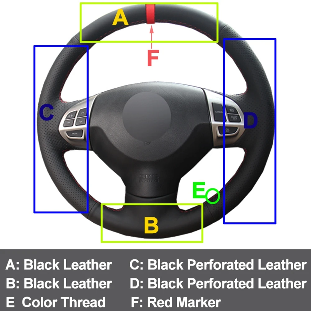 Чехол рулевого колеса автомобиля, искусственная кожа, красный маркер для Mitsubishi Lancer EX 10 Lancer X Outlander ASX Colt Pajero Sport