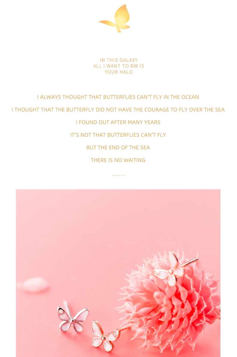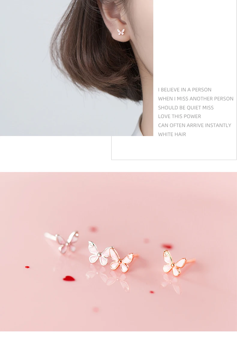 Женские серьги-гвоздики с розовой бабочкой WANTME, 100% Стерлингово...