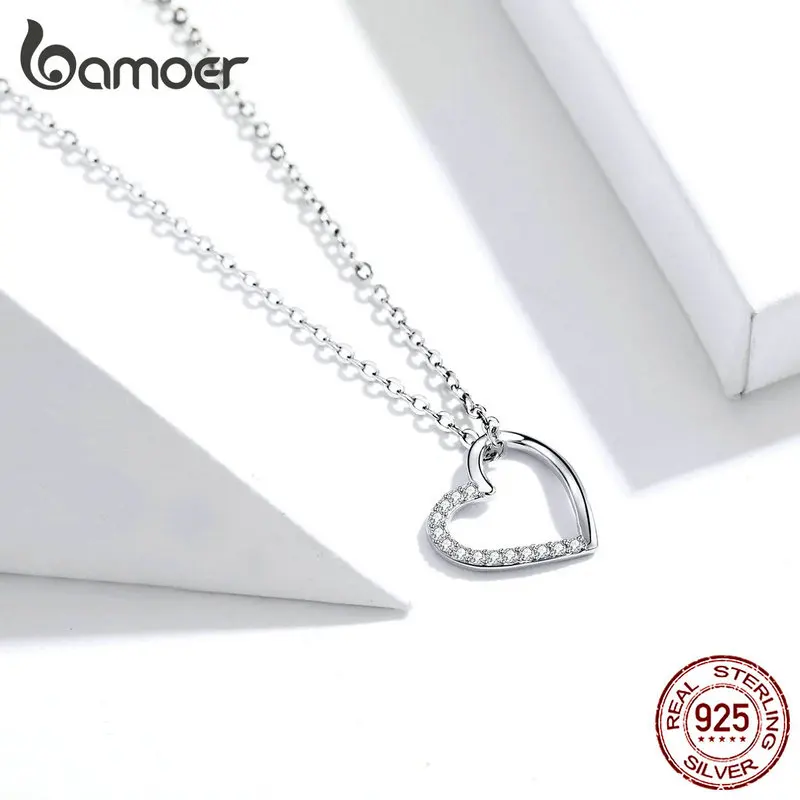 Женское Ожерелье-цепочка bamoer из настоящего серебра 925 пробы в форме любви, изящное ювелирное изделие, новинка 2020, воротник SCN347