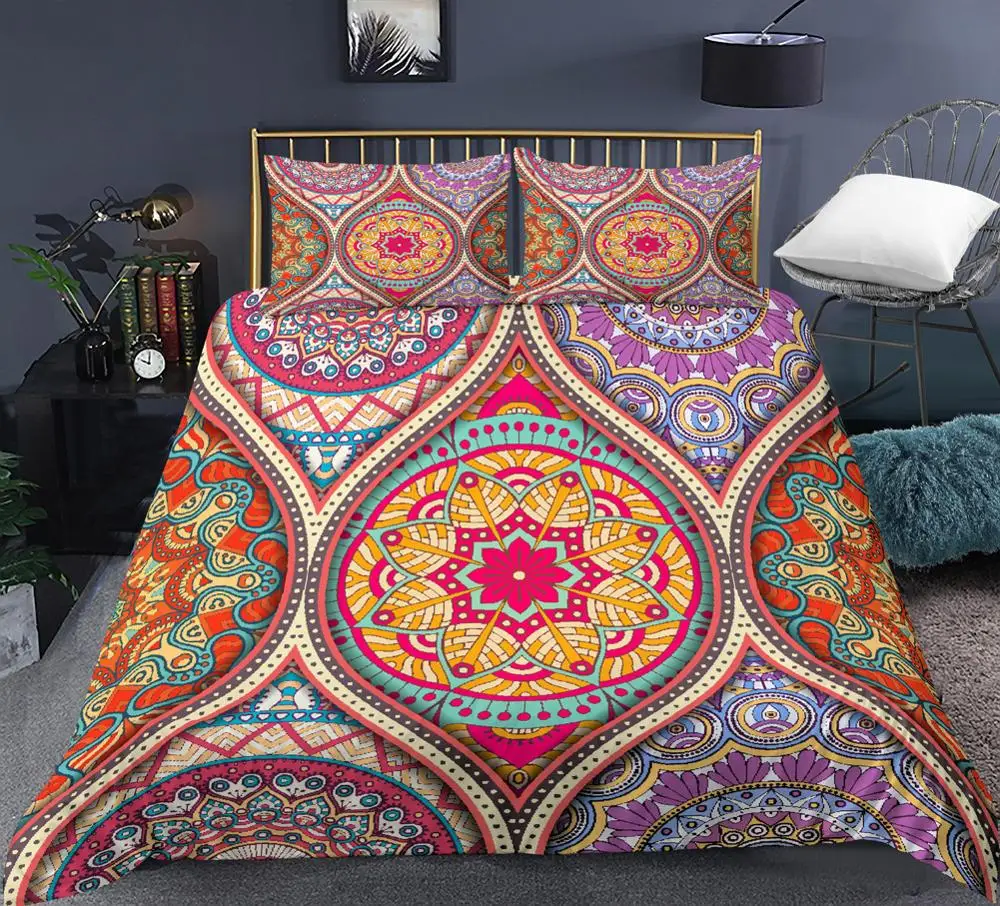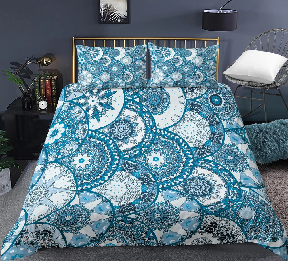 3D Цветочный узор в виде мандалы, пододеяльник для дома, покрывало, пододеяльник, постельный комплект, декор для кровати с наволочками, размер СШАAUEU