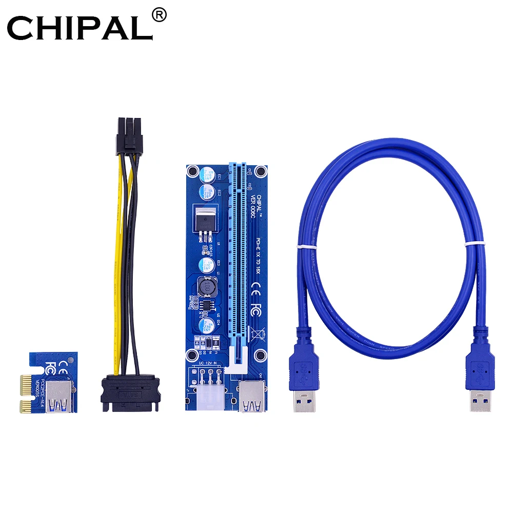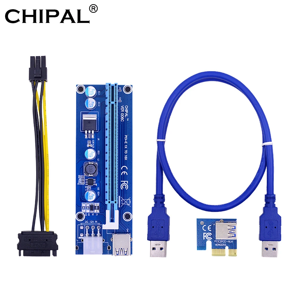 Райзер-карта CHIPAL VER006C, 100 см, 60 см, USB3.0, кабель передачи данных 006 PCI Express 1X 16X 6Pin для SATA питания для видеокарты
