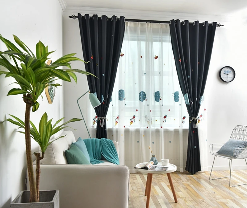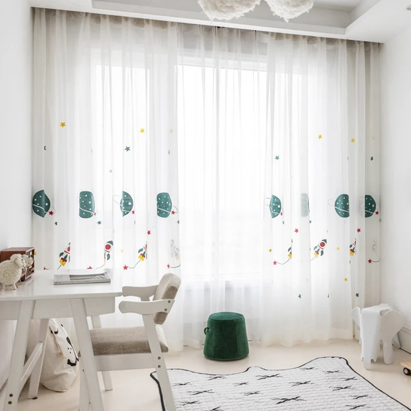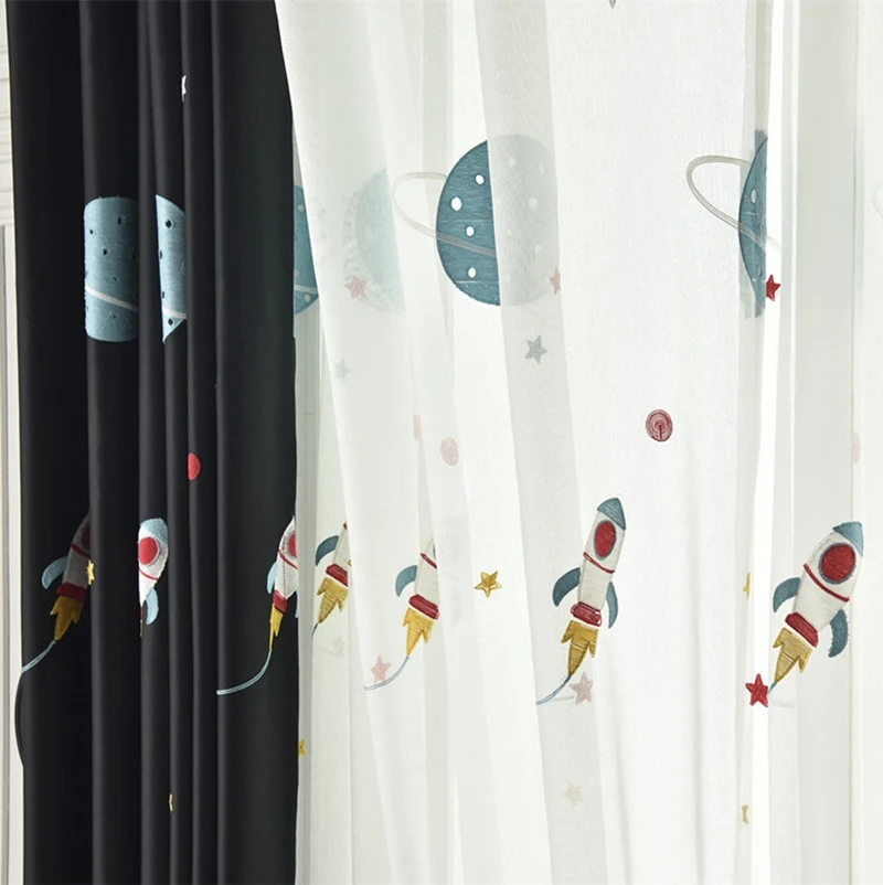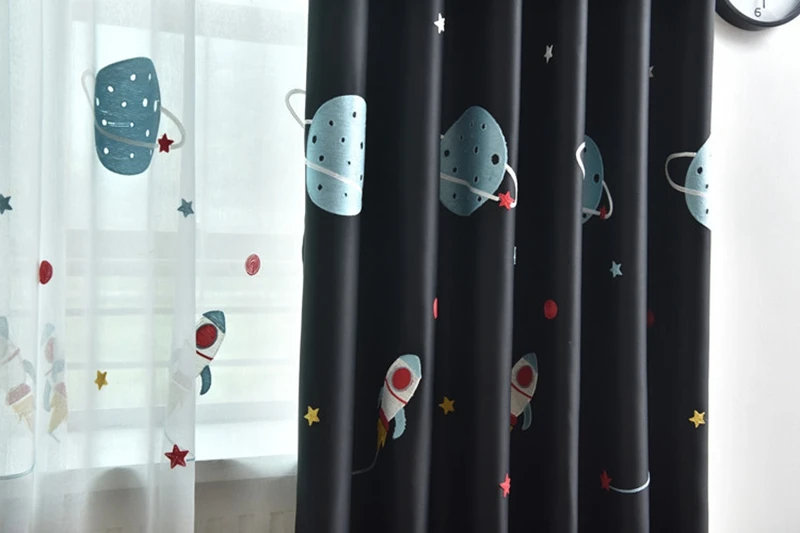Затемняющие шторы с мультяшным изображением космоса планеты для детской спальни для мальчиков плотная ткань оконные занавески прозрачный тюль для гостиной