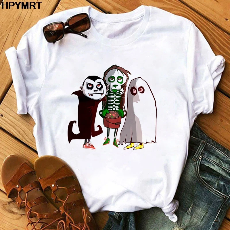 Женская футболка в стиле Харадзюку на Хеллоуин, футболка с круглым ...