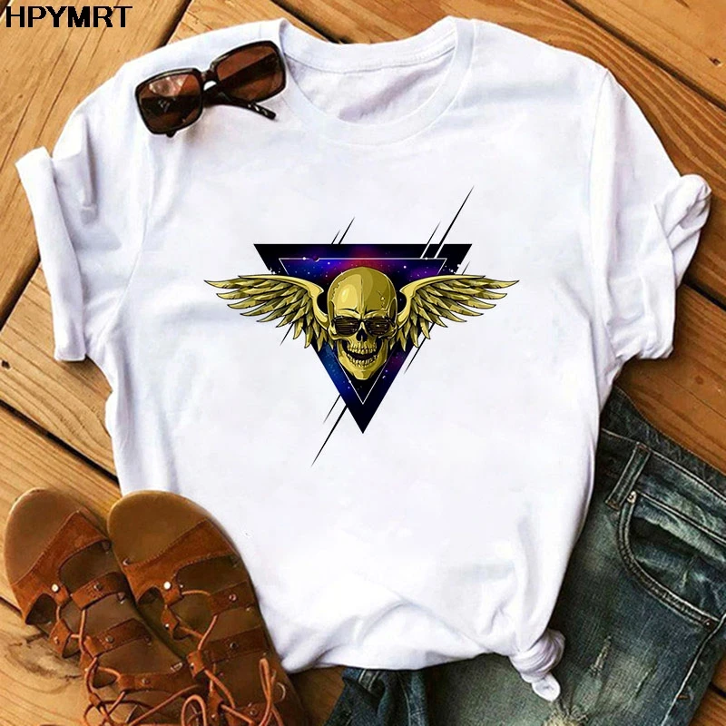 Модный Топ Женская футболка с принтом скелета Harajuku футболка жен...