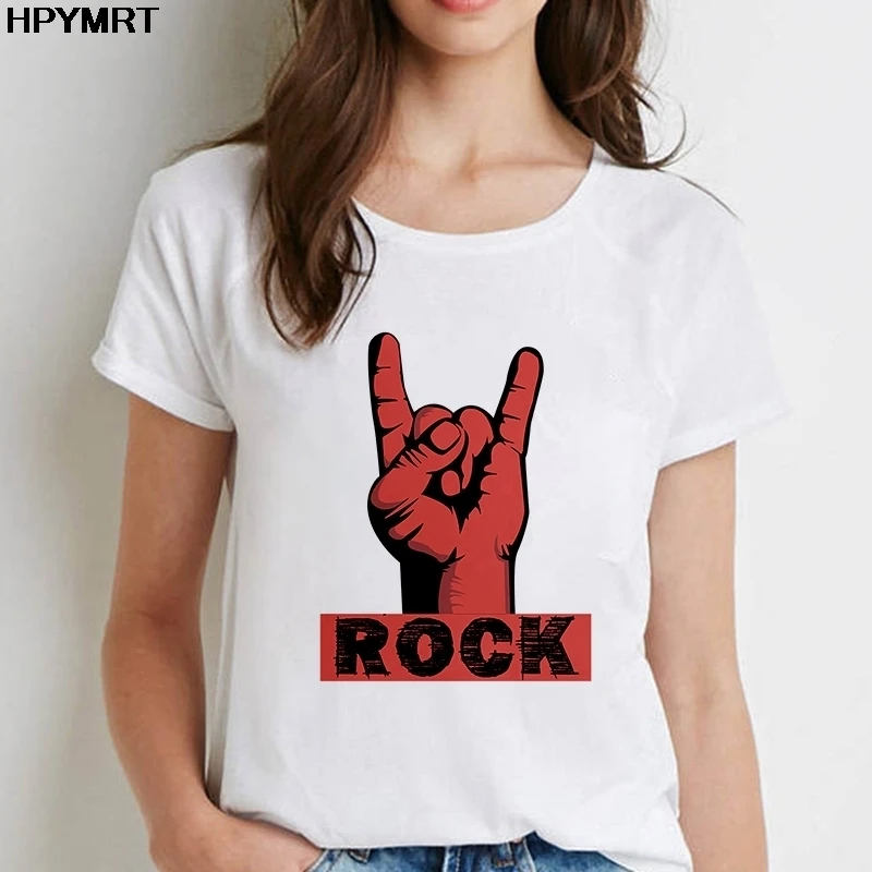 Женская футболка с принтом жестов рок, Повседневная модная футболка...