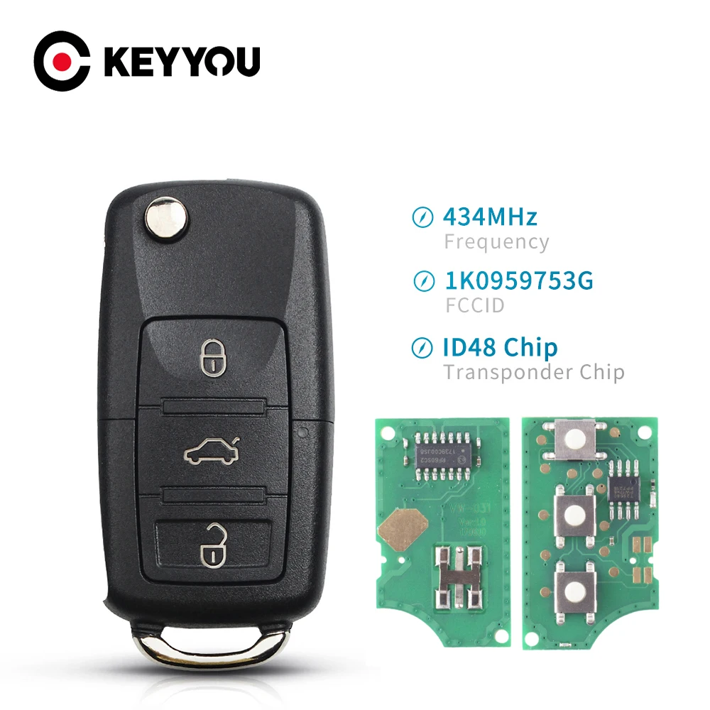 Автомобильный ключ KEYYOU ID48, дистанционный ключ 434 МГц для Volkswagen Golf Passat Polo Jetta Touran Bora Sharan 1K0 959 753 G 2004 - 2010