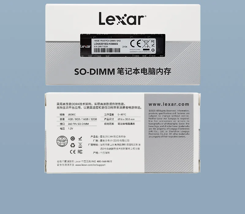 Пакет не был запечатан голографической наклейкой или что-либо еще, но модуль является легированным. Lexar-хороший бренд. Модуль не имеет крышки для рассеивания тепла, но это очень красиво для основного модуля памяти. Упакован хорошо. Система была напряжена и не было показано никаких ошибок чтения. На что жаловаться. JEDEC 69,6x30,0 мм, 260 pin so-dimm DDR4 1,2 В, работает безупречно от 0 до 85 градусов Цельсия.