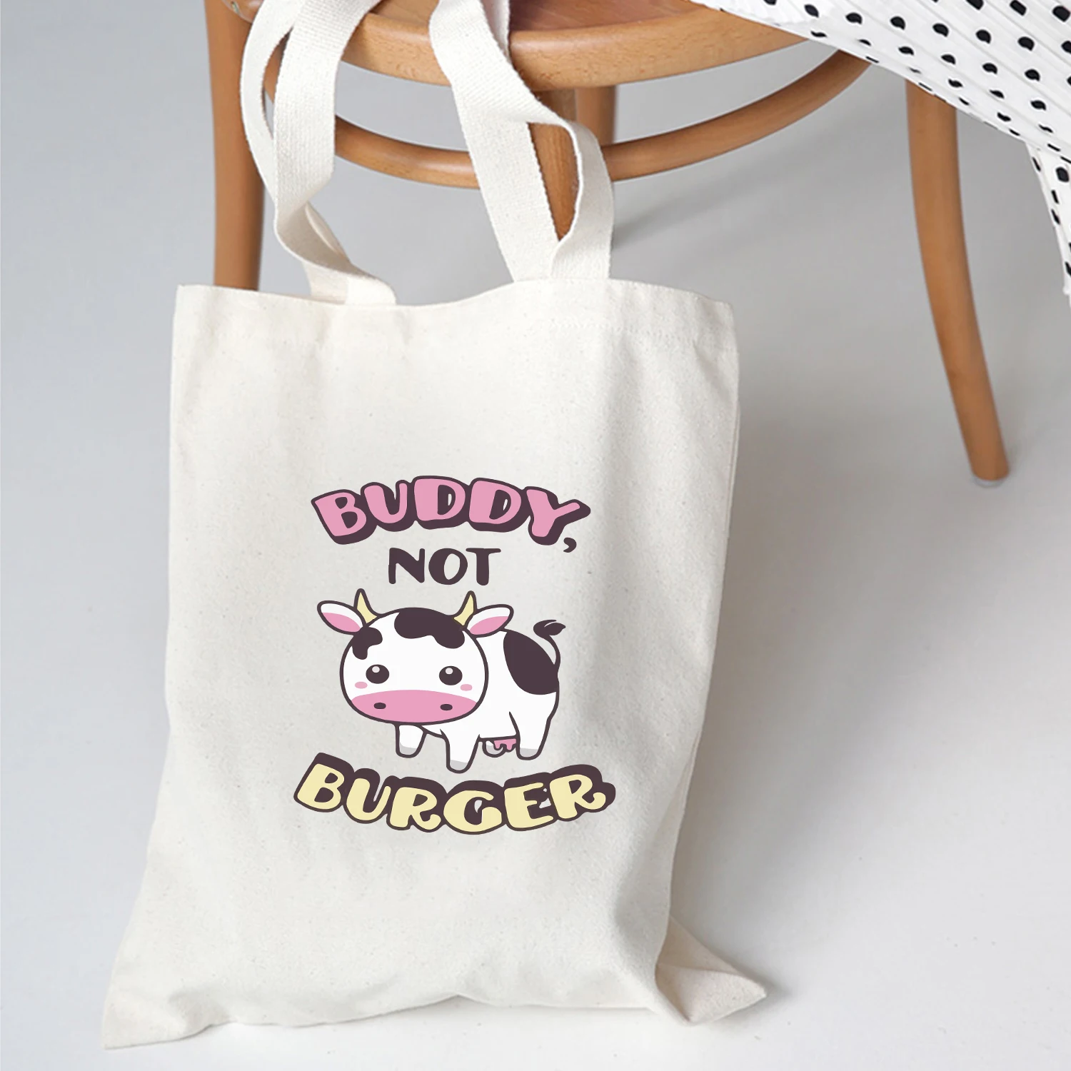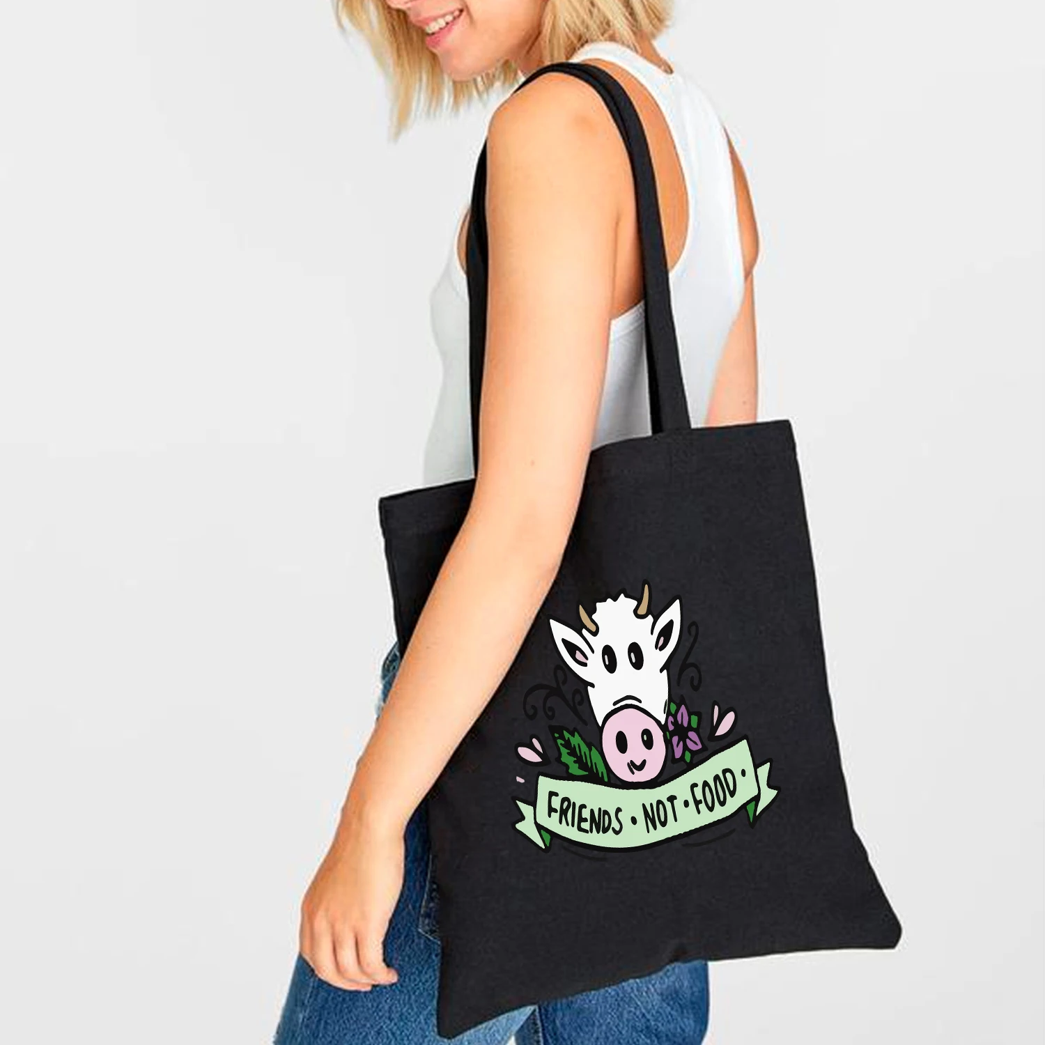 Холщовая многоразовая сумка для покупок, милые сумки-тоуты унисекс с рисунком веганских животных, для учеников, большая