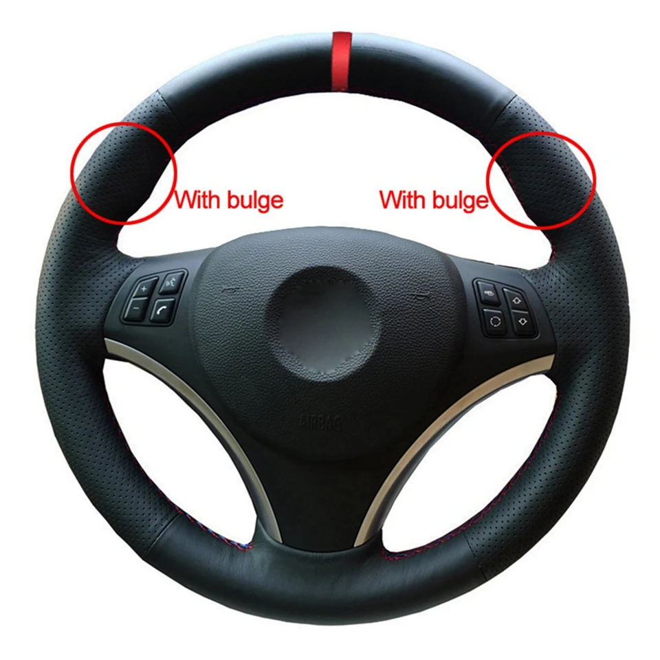Чехол рулевого колеса автомобиля Мужская прошитая вручную обувь черного цвета из искусственной кожи красный маркер для BMW E90 320i 325i 330i 335i E87 120i 130i 120d