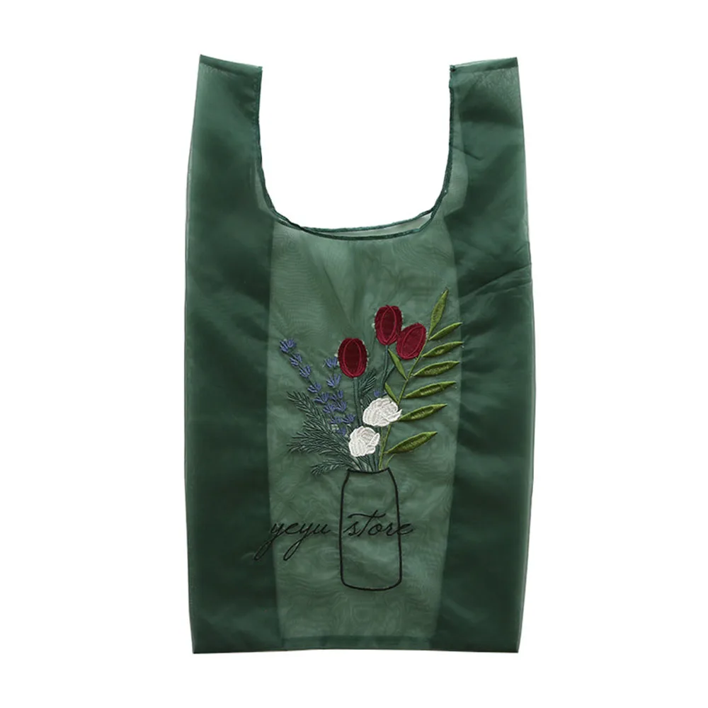 Женская сумка с вышивкой, органза, повседневная сумка-тоут, сетчаты...