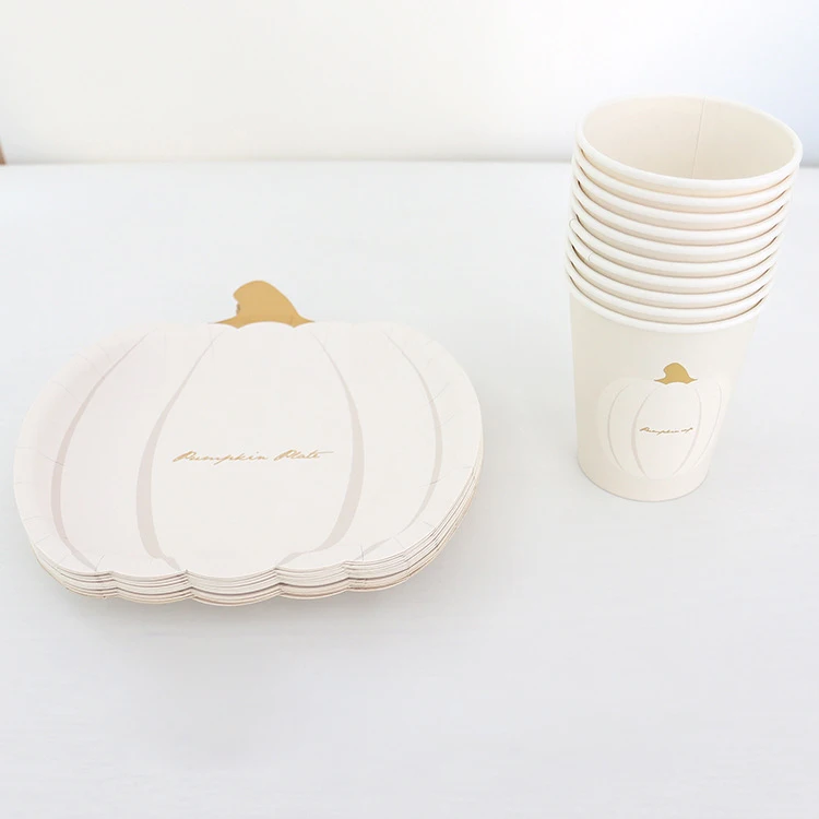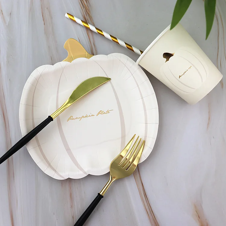 Одноразовая бумажная тарелка для Хэллоуина, тыква, бронзовая, бумажный стаканчик, тарелка