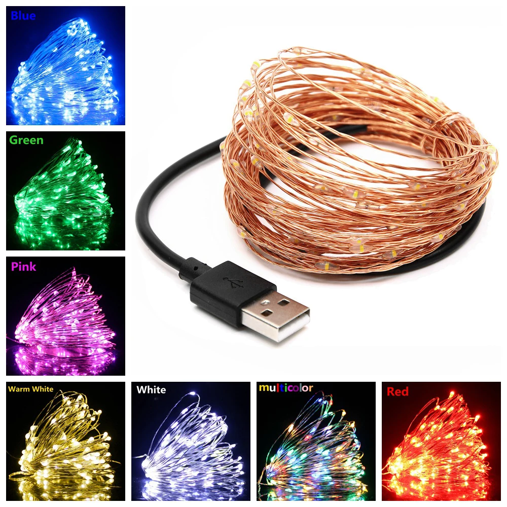 Гирлянда с проводами длиной 1-20 м для украшения дома, Рождества, свадьбы, вечеринки, питание от USB, новый год 2021, светящиеся украшения