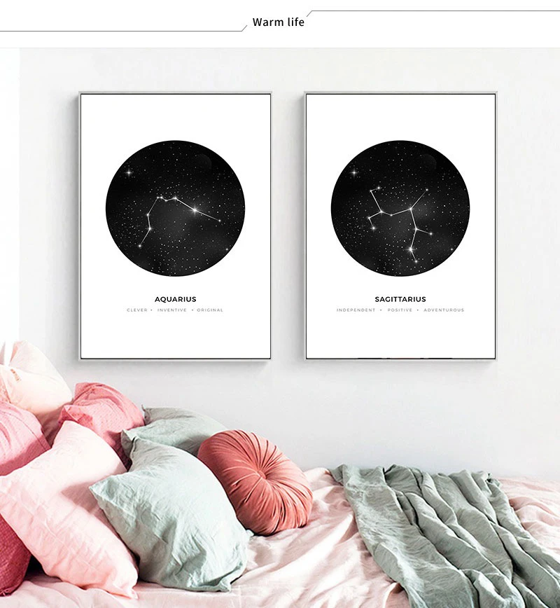 12 созвездий, домашний декор, скандинавский Картина на холсте, наст...