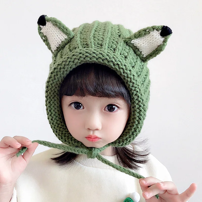 QXMY/шапки для мальчиков и девочек; Детская шапка из шерсти с лисой; Осенне-зимняя вязаная шапка с ушками для малышей; Теплая Модная одежда для новорожденных детей