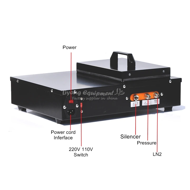 1. Если не использовать, пожалуйста, выключите питание, закрутите алюминиевая заглушка, наденьте жидкий азотный бак оригинальной пенопластовой крышкой, алюминиевая заглушка должна быть удалена, когда не используется, или жидкий азот будет испаряться в течение короткого времени и вызовет Большие отходы. 2. Новая версия машины 220V/110V широко используется сейчас.3. 10 л жидкого азота, может работать около 8 часов подряд, может отделить 500 шт экраны.