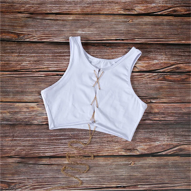Женский сексуальный укороченный топ без рукавов с металлической цепочкой, Клубная одежда, регулируемые кружевные ажурные майки, топы, футболки, пикантная майка, Клубные шорты