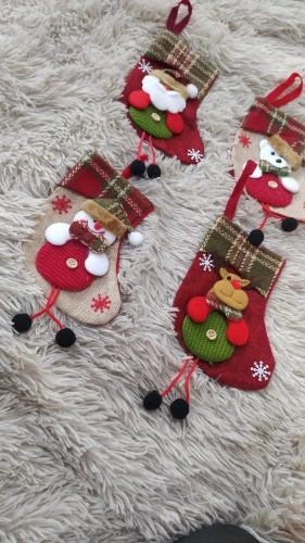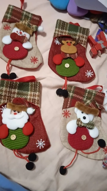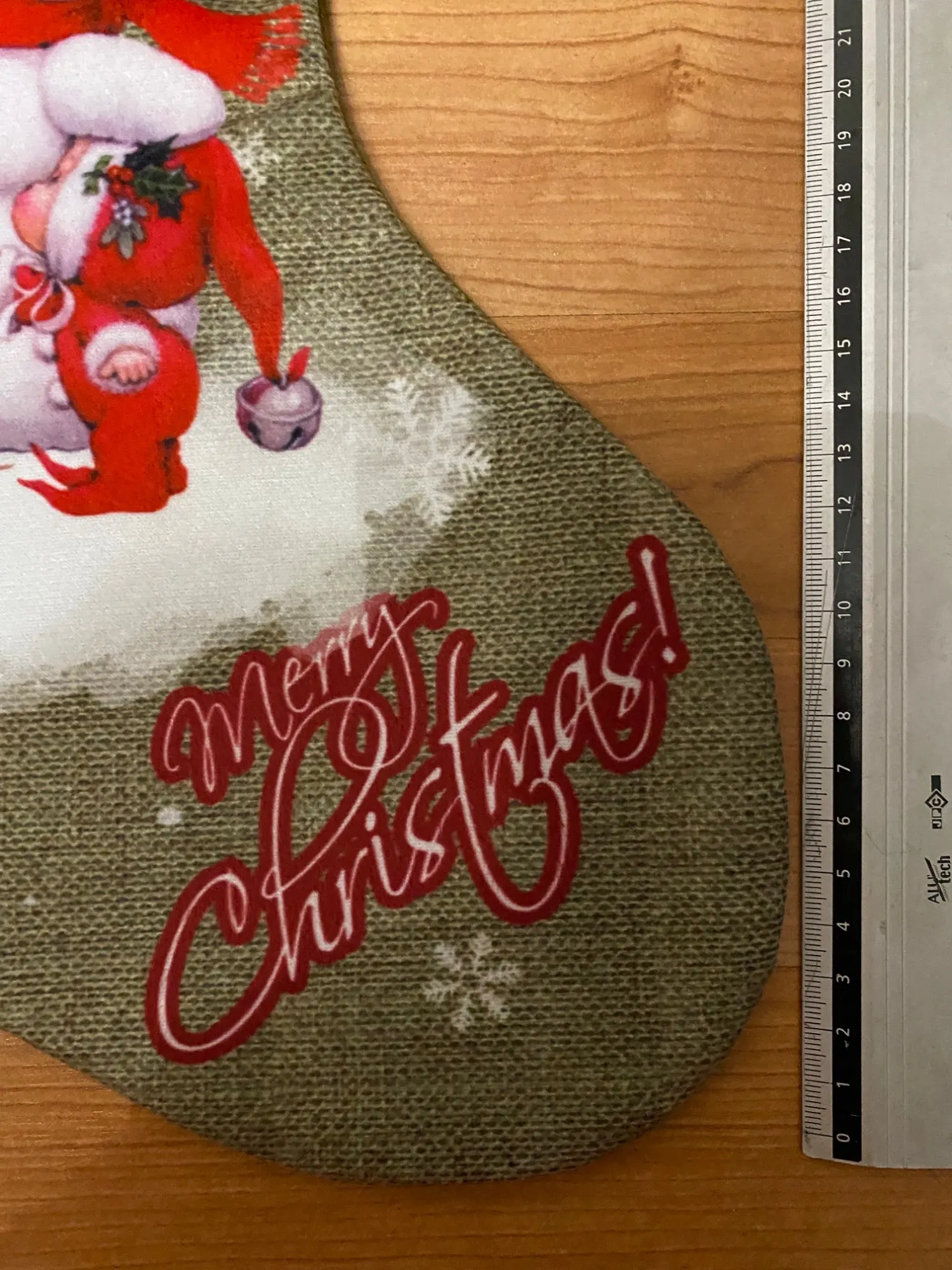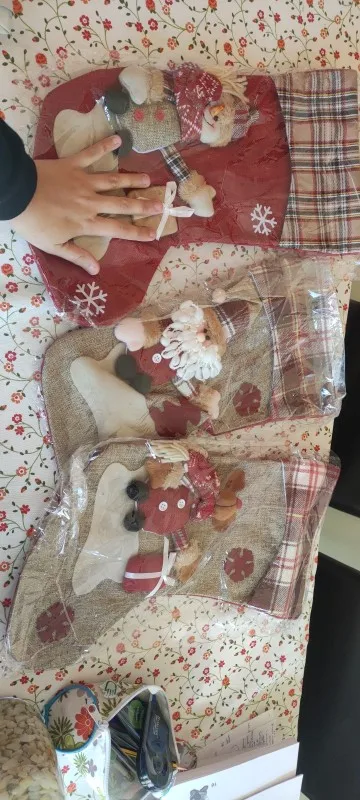 очень красивые носки, даже красивее,чем ожидала. сам носок прошит хорошо,нитки нигде не торчат. элименты аппликации хорошо держаться на горячем клее. купила размер М, для наполнения сладостями,лучше взять L. доставка быстрая,с продавцом не общалась.