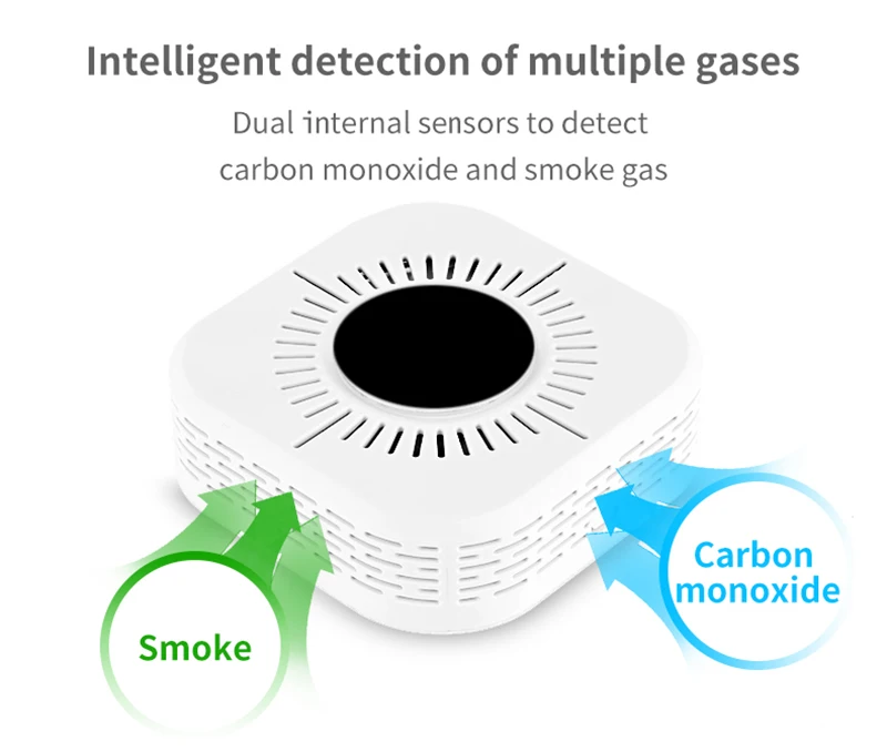 Support поддержка трех основных сигналов тревоги, дыма + CO + беспроводная передача сетевой сигнализации;