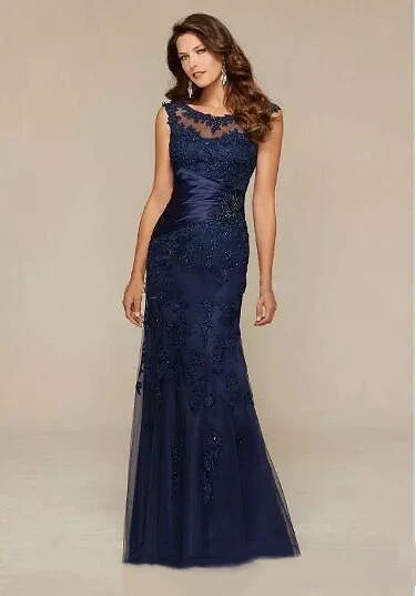 Роскошное темно-синее платье для матери невесты, Кружевное платье-Русалка с бусинами, 2021, без рукавов, прозрачное вечернее платье для жениха и матери на свадьбу