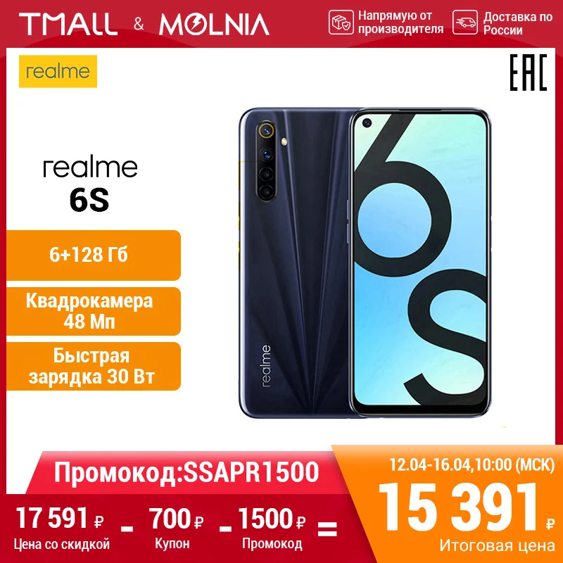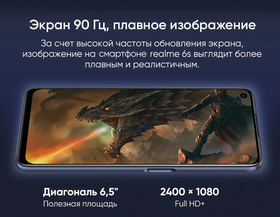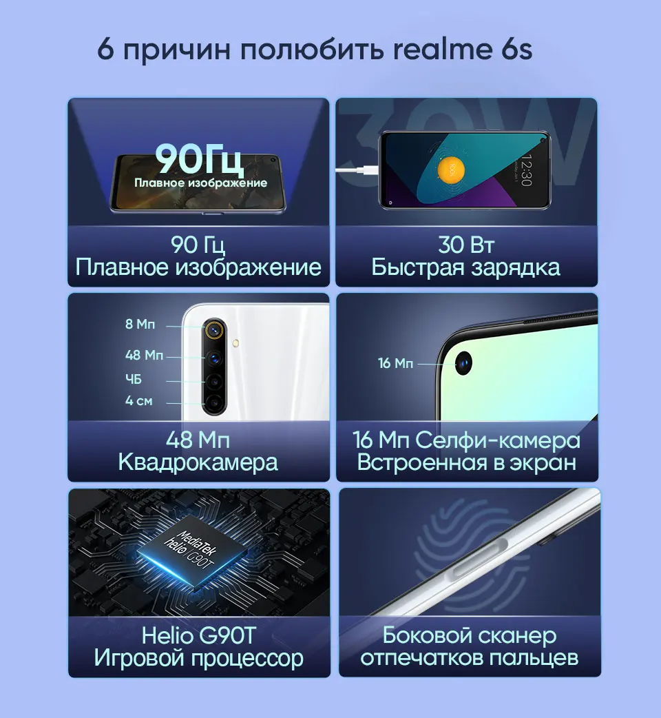 Смартфон realme 6S 6+ 128 ГБ, Helio G90T Игровой процессор, 30Вт быстрая зарядка, 90Гц плавное изображение Molnia
