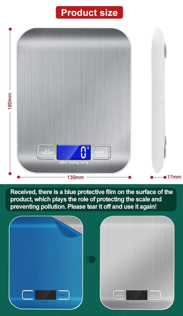Электронные кухонные весы, точный прибор из нержавеющей стали с USB, максимальный вес 10 кг5 кг, для приготовления пищи и выпечки
