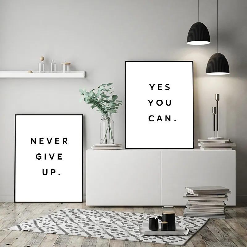 Минималистские черно-белые мотивирующие цитаты, да, вы никогда не сможете сдаться, настенные художественные плакаты и принты, Современный домашний декор TB22