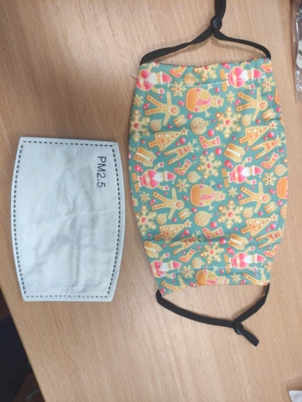 маска маленькая. имеет внутренний кармашек для угольного фильтра, один фильтр идёт в комплекте, потом докупаются и меняются. можно использовать без фильтра. резинки регулируются. рисунок интересный. синтетика, легко моется и быстро сохнет.