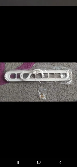 Пришло достаточно быстро- но можно и побыстрее (менее месяца). Качество неплохое, пластик, вроде прочный. Повесила на нее 5 вешалок с футболками (по 2 шт), немного выгнулась, но не мешает (может если повесить по 1 футболке будет лучше). Вцелом ок, закажу еще. Под тяжестью не сломалась, вроде все ок.