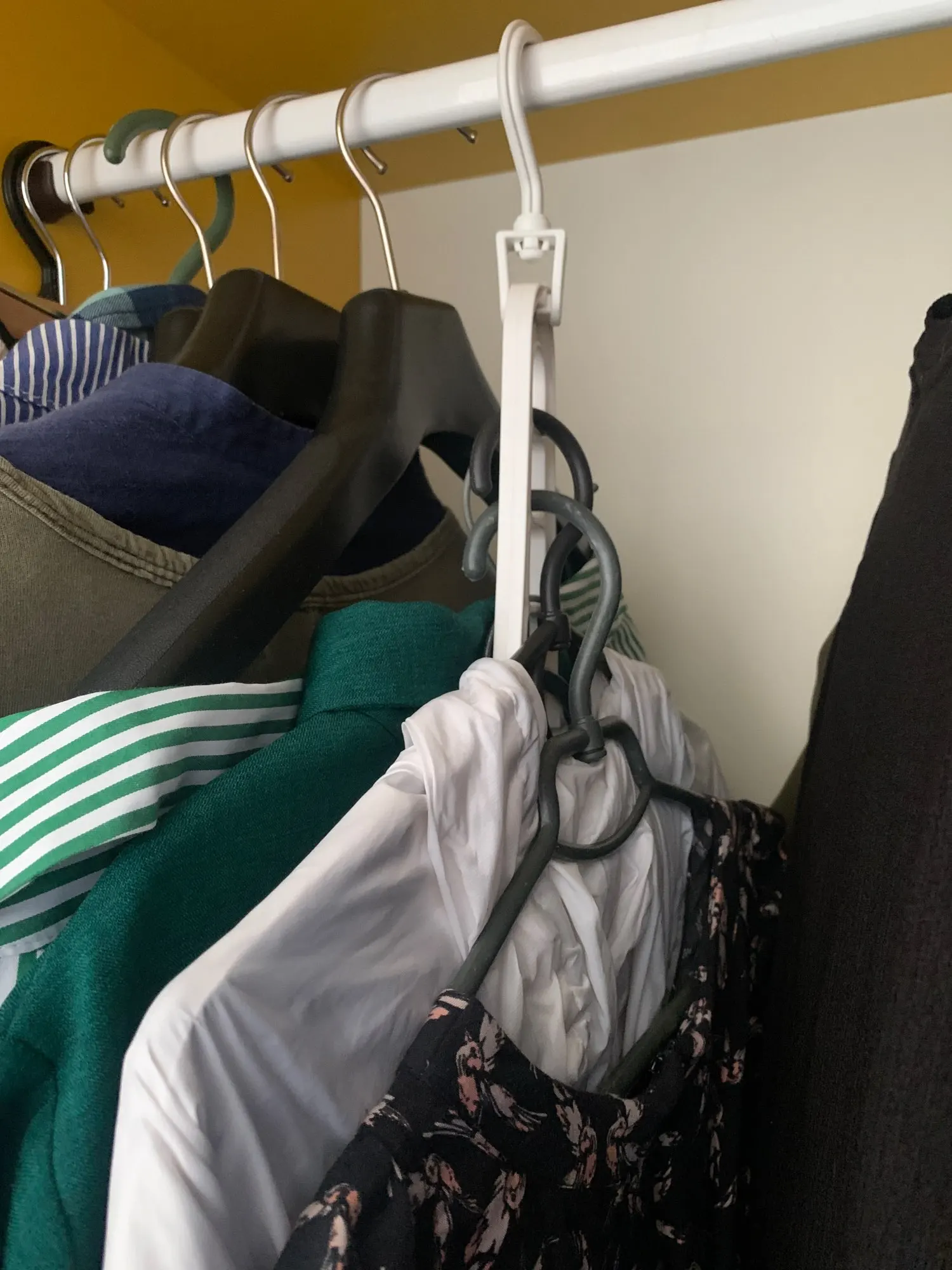 навешала максимум футболок. удобно. но немножко выгнулась
