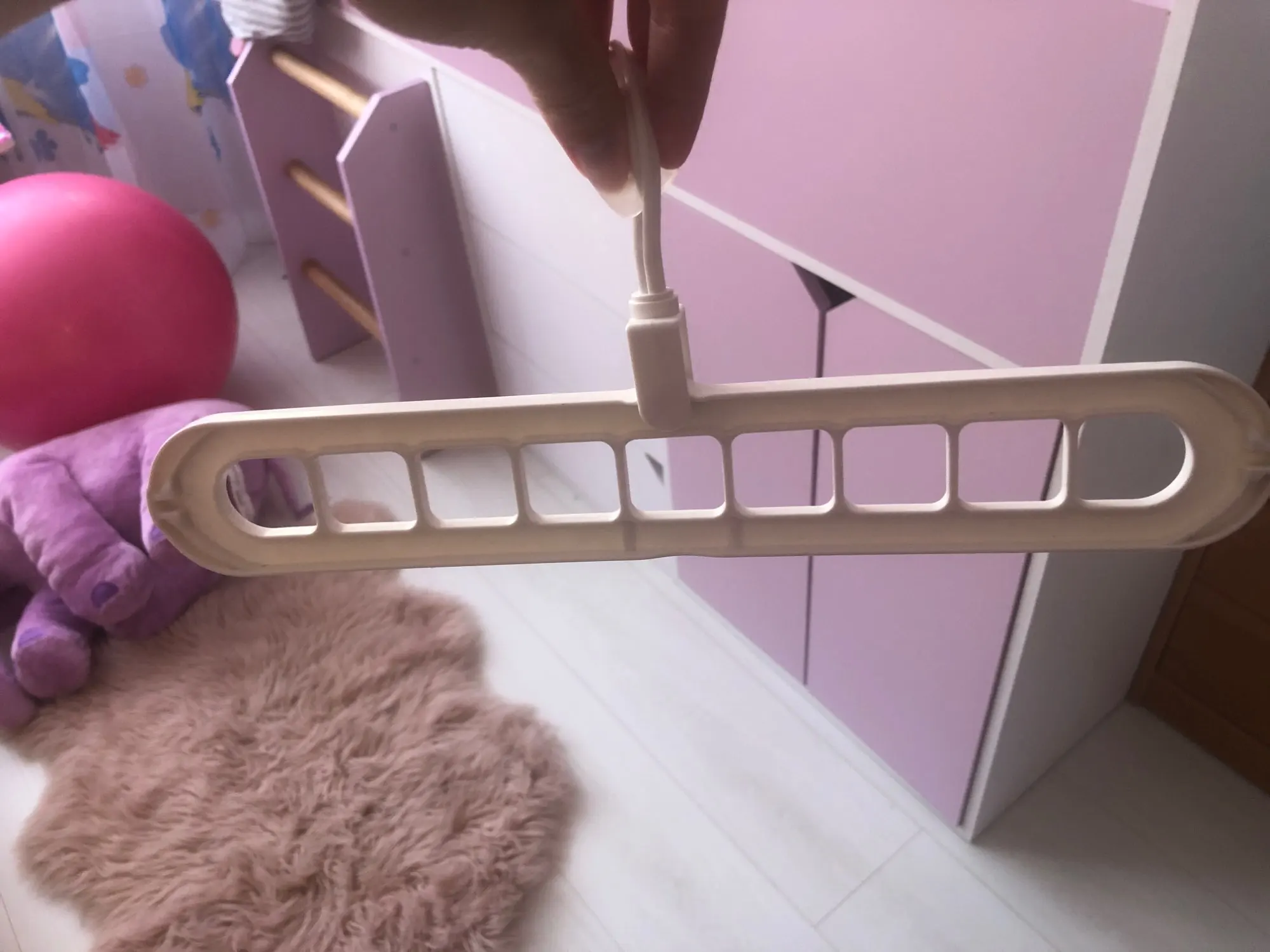 Вешалки хорошие, но предназначены для легкой одежды. Как только вес увеличивается, планка начинает выгибаться. Вероятно, надо было бы использовать более толстый пластик. Доставка быстрая и продавцу Спасибо.