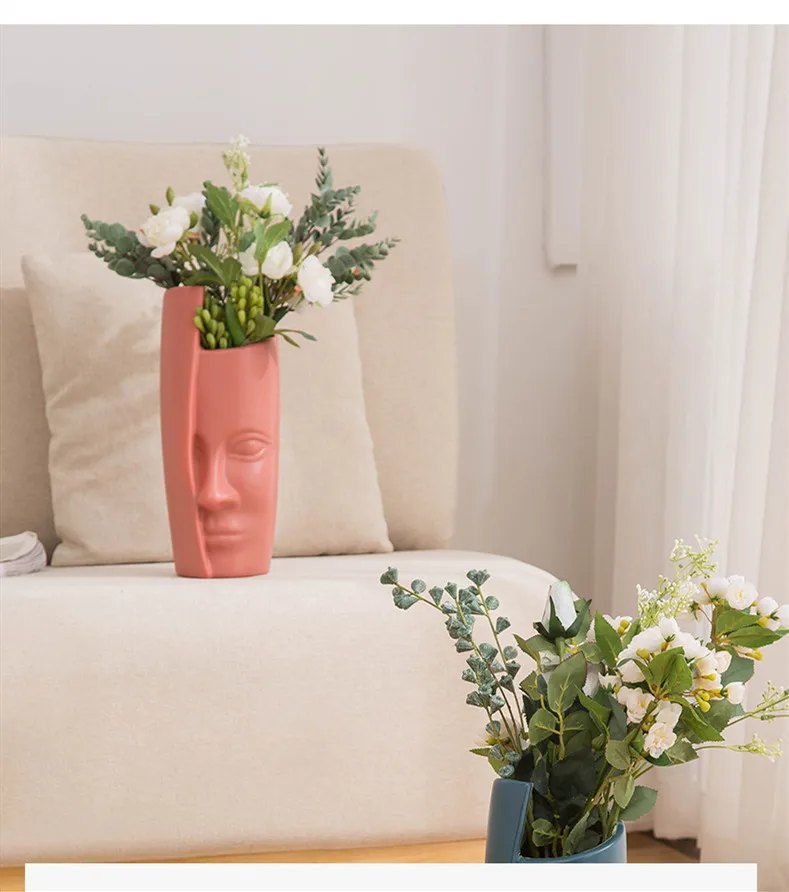Ваза для лица в скандинавском стиле, ваза из антикерамического пластика с имитацией глазури, Современная Минималистичная абстрактная Цветочная композиция, украшение для дома